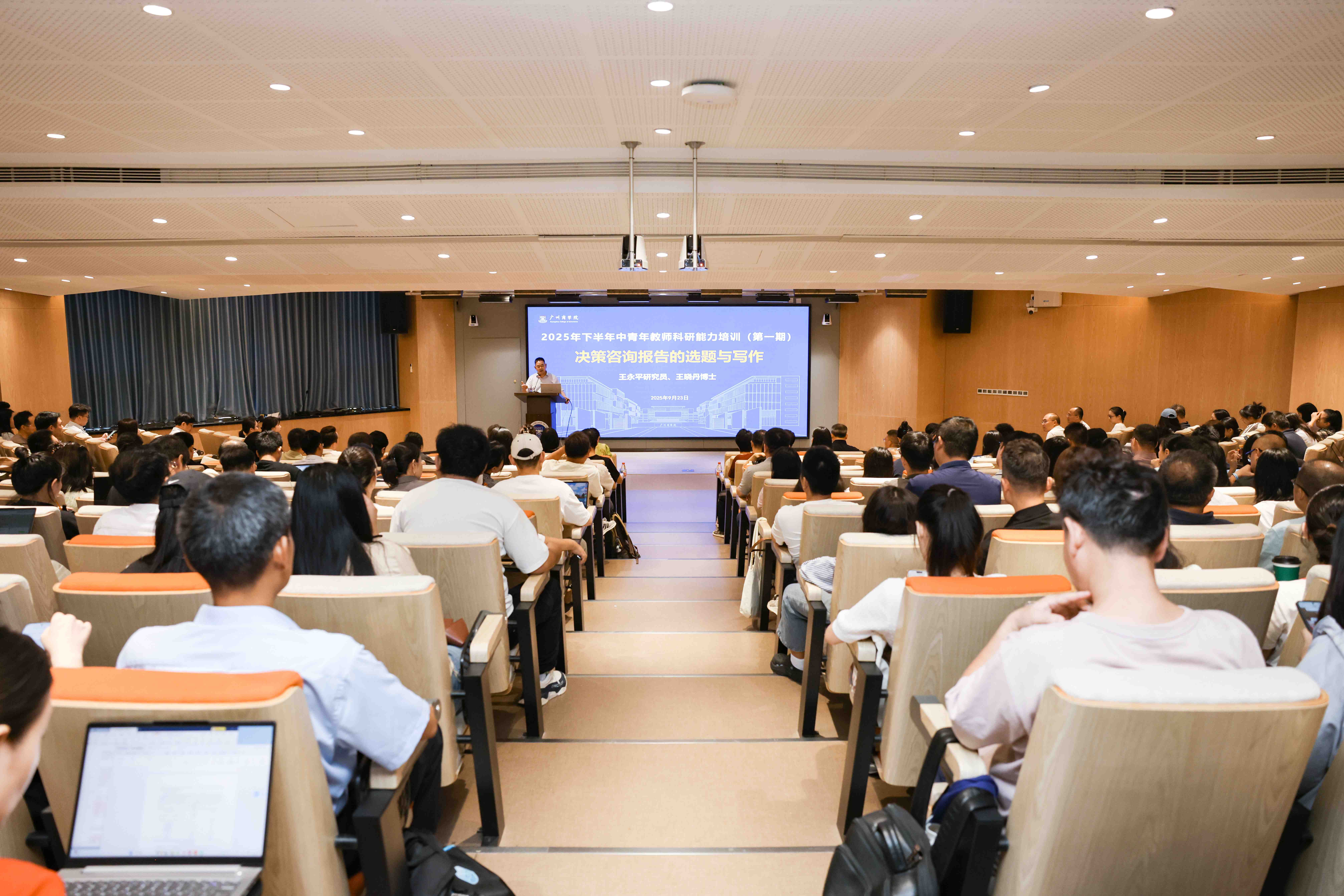 9月23日,我校在求真楼八教202报告厅举办2025年下半年第一期中青年教师科研能力培训。本次培训以“决策咨询报告的选题与写作”为主题,特邀《南方智库专报》主编王永平研究员、广东财经大学王晓丹博士担任主讲嘉宾。我校副校长邹新月,相关职能部门、学院主要负责人以及全校中青年博士教师等近300人参加了培训。
