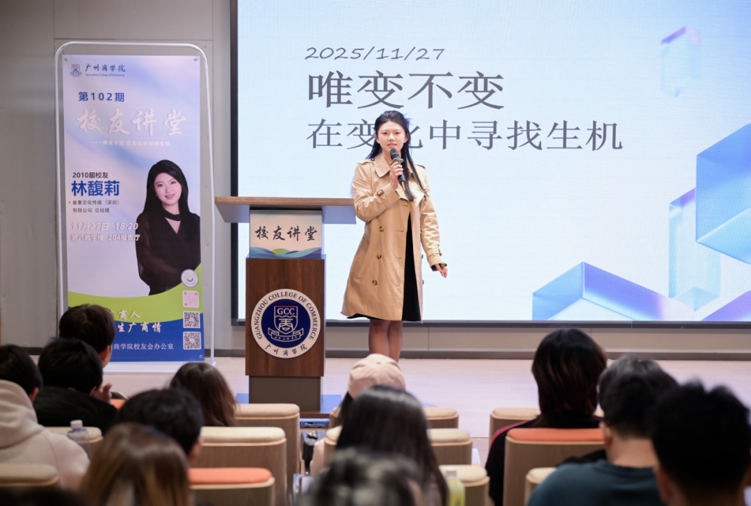 从广商课堂上的电商学子,到全国赛事的一等奖领队;从返乡扎根电商培训的业务岗,到成为跨界500强企业的管理层,再到如今锚定AI赛道的创客。“每一次决策都关乎长期价值的积累让每一段经历都复利生长。”林馥莉师姐的成长轨迹,始终贯穿着“变”的关键词。