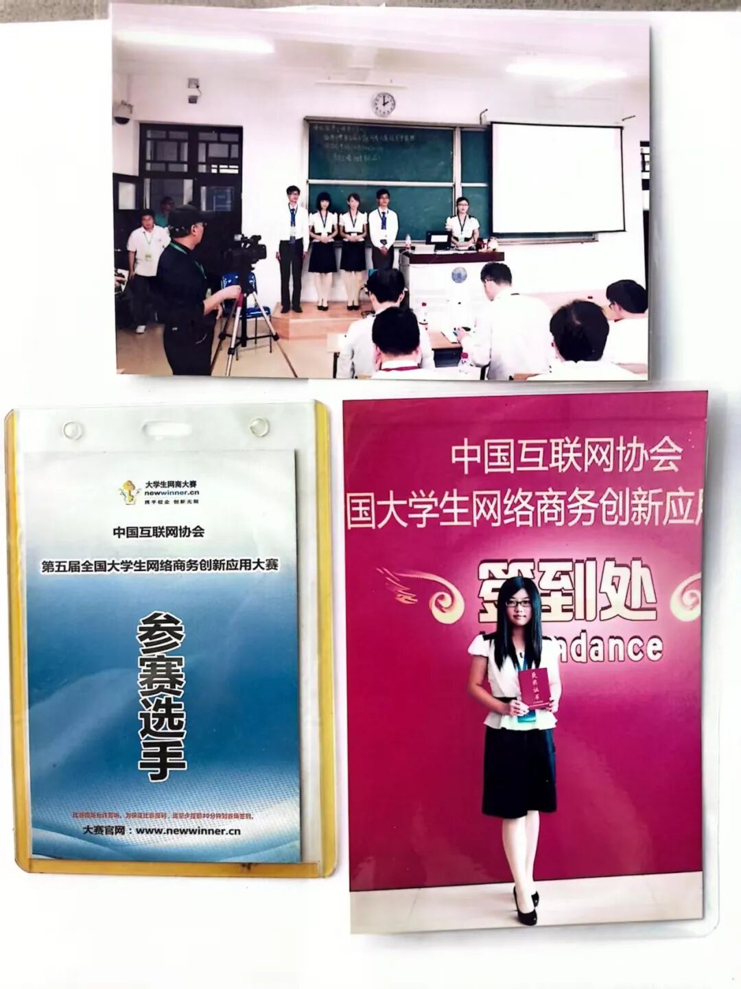 师姐参赛的选手牌、参赛现场及获奖留念