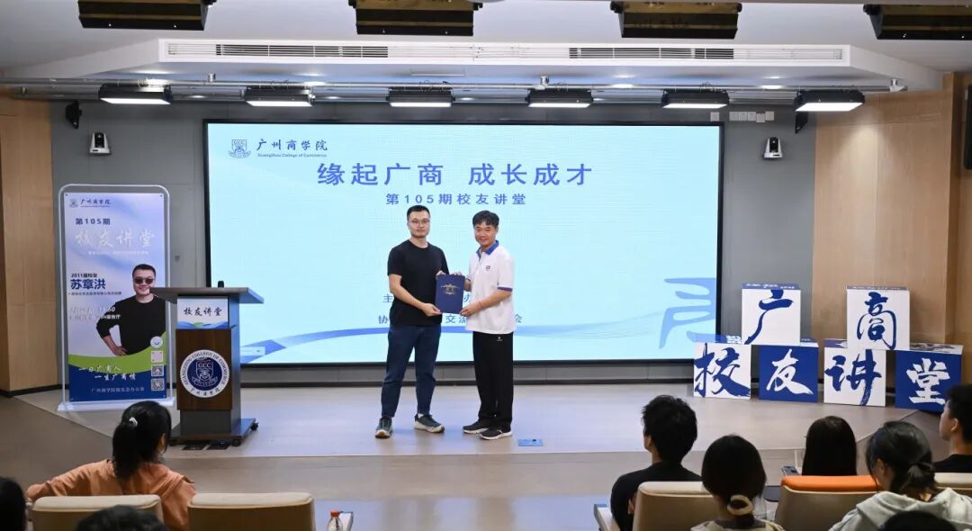翁楚歆为苏章洪颁发校友讲堂分享嘉宾聘书