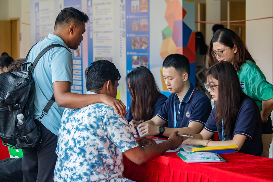为给国际学生初入校园带来美好体验,学校对首届国际学生的迎新工作高度重视,成立了国际学生迎新工作专班,统筹部署工作方案,做好迎新物资准备、现场报到、生活安排、入学教育等各项保障,为新生提供便捷的入校注册服务。