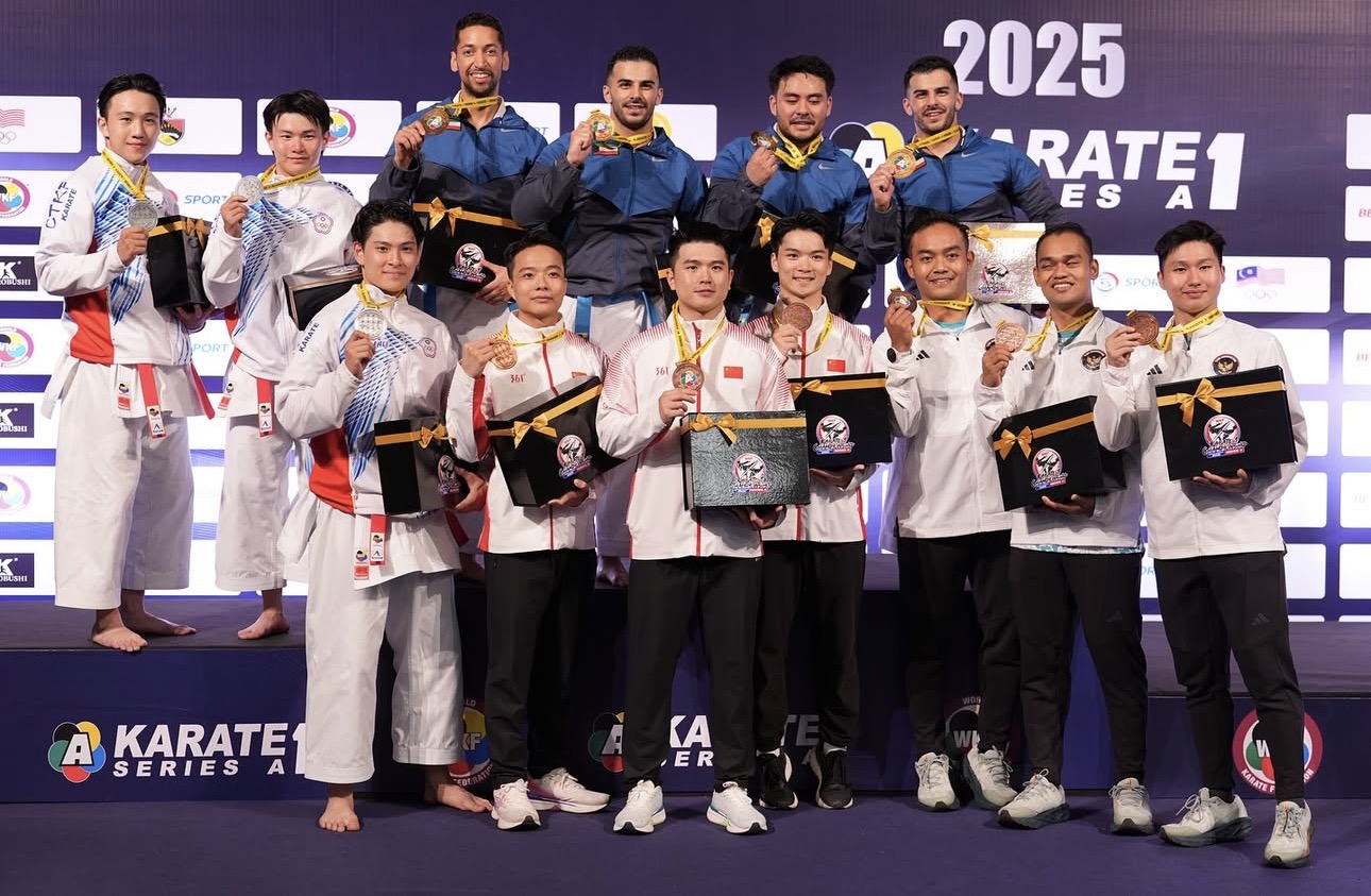 近日,在马来西亚吉隆坡举行的2025年世界空手道联合会(世空联)K1-A系列赛赛场上,代表中国出征的我校体育学院运动训练2023级学生何梓俊表现抢眼。他随中国男子空手道团体型队伍连续突破,先是在复活赛力克德国、秘鲁等劲旅,后又在铜牌赛击败印尼队,助力队伍斩获中国男子团体型在该赛事的首枚奖牌,为中国大学生体育代表团再添捷报。