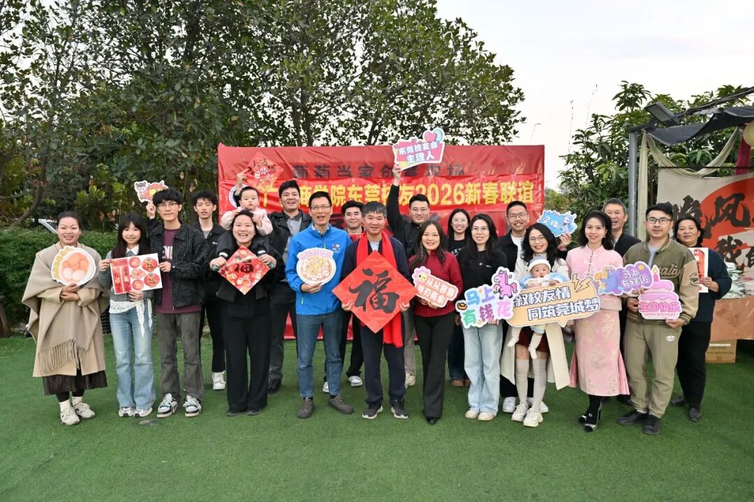 岁序更替,华章日新。为喜迎2026年新春佳节,共叙校友情,广州商学院东莞校友会组织开展了联谊会。本次活动于2月8日下午4点至晚上9点,在东莞万江葡萄当家创意农场顺利举行,校友们热情参与,现场氛围热烈非凡。