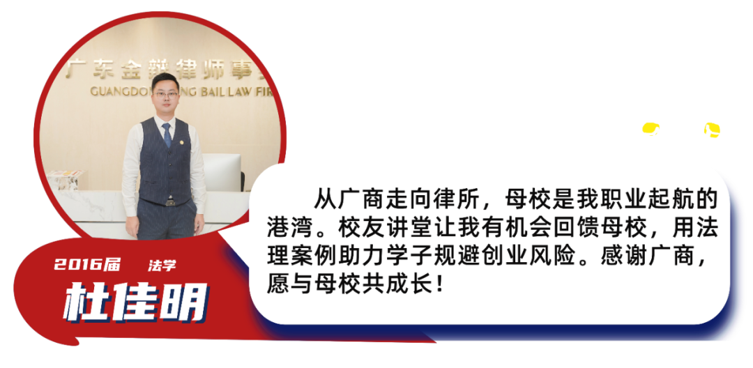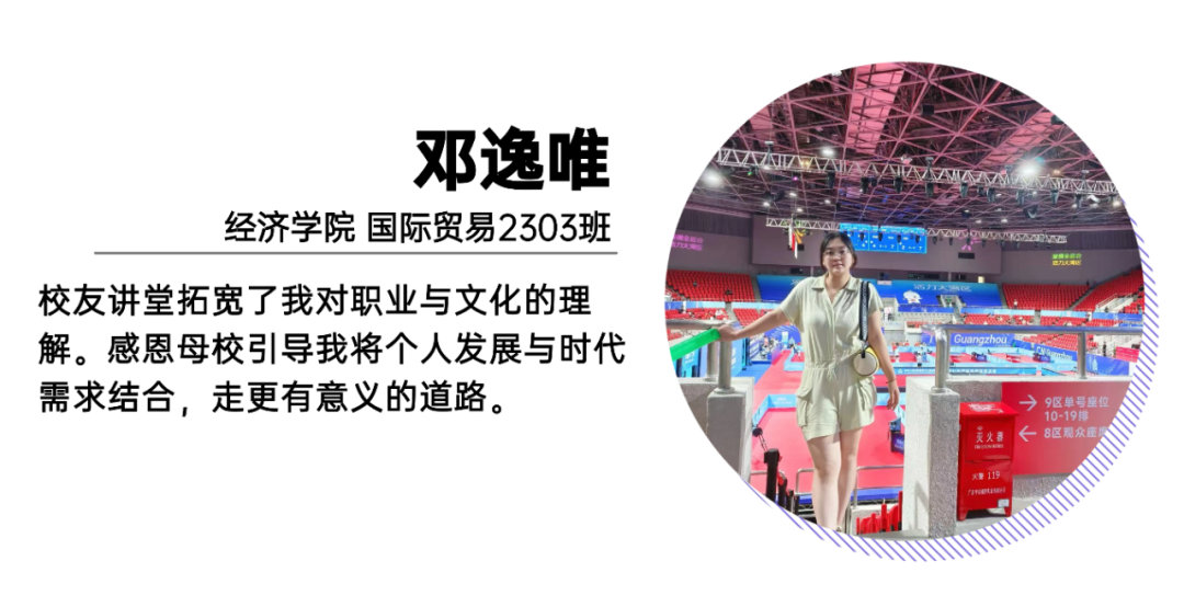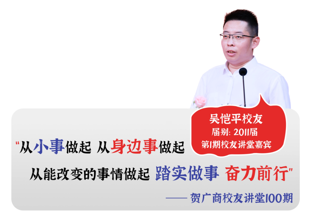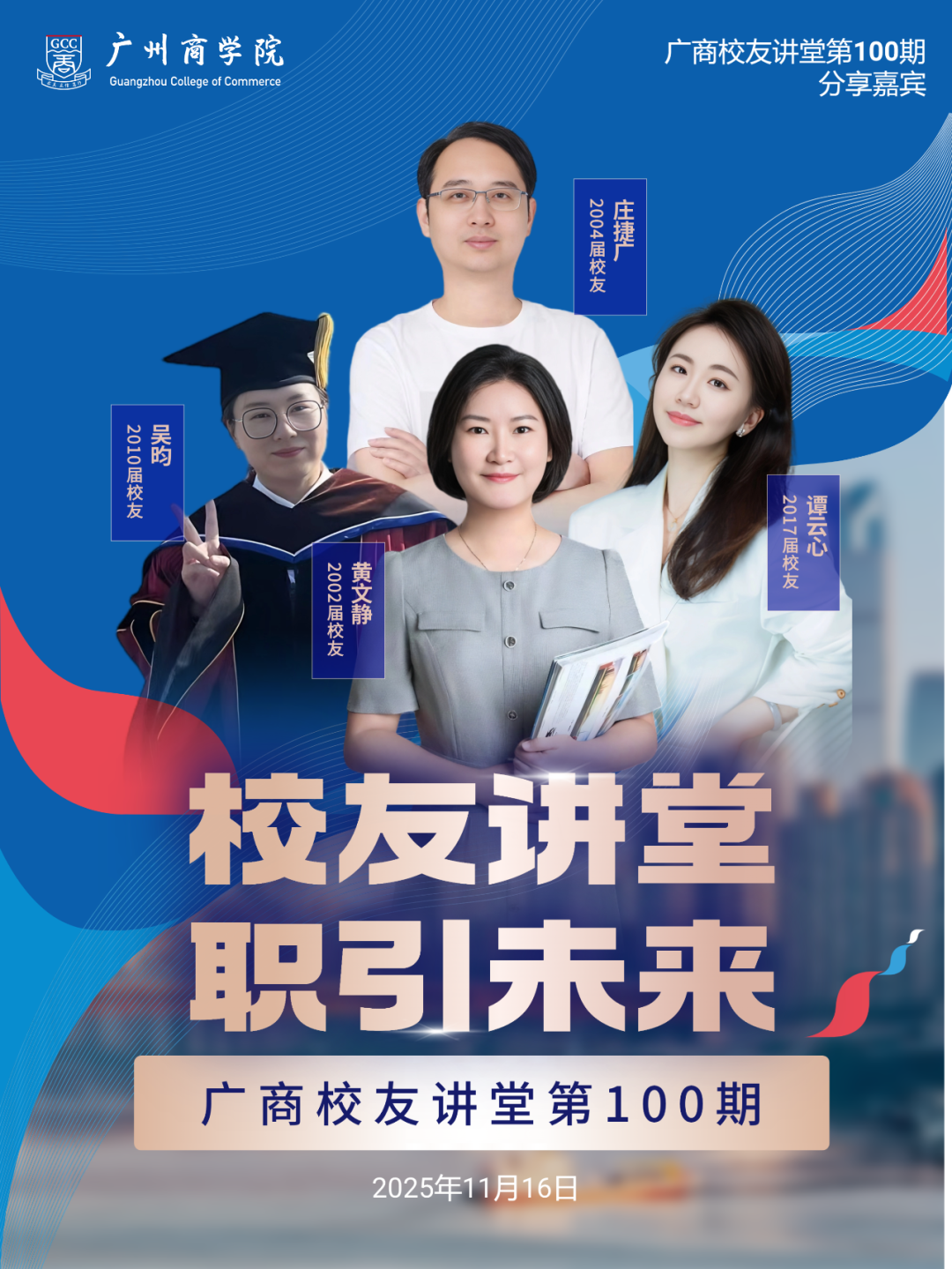 从第一期的微光汇聚到第一百期的硕果盈枝,校友讲堂用100次心与心的对话,串联起历届校友的职场沉淀与人生感悟,也为逐梦路上的在校生点亮了前行的灯塔。缘起广商,成长成才,校友讲堂,职引未来,那些沉淀在话语里的经验,流淌在感悟中的热忱,都成为这场“百期之约”最珍贵的注脚。