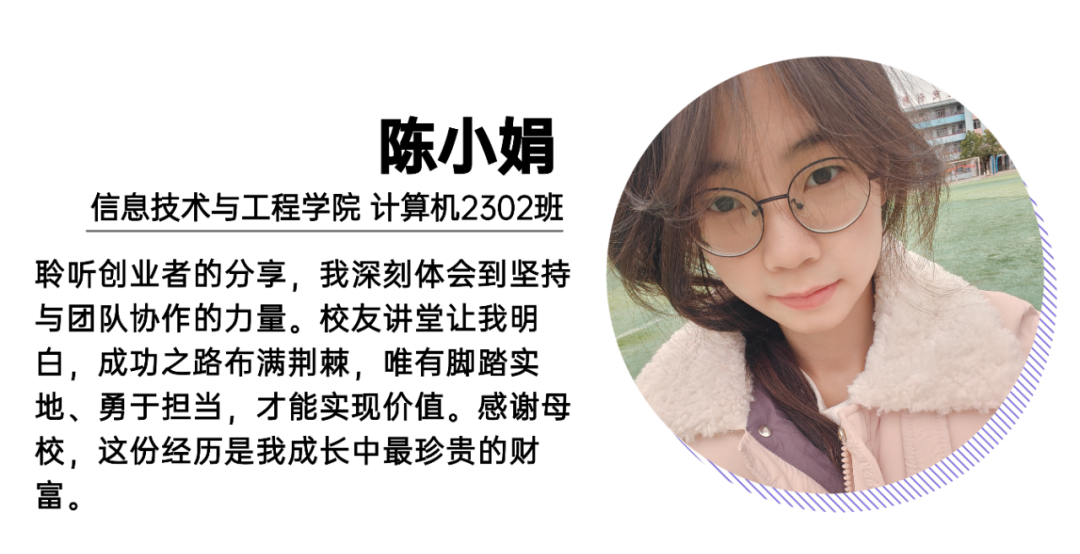 感谢这100期的陪伴,让我们在出发前,就读懂了成长的意义。100期,是一个圆满的节点,更是一段崭新的开始。那些从校友口中说出的箴言,那些在校生心中萌发的感悟,终将跨越时光、代代相传,让校友讲堂的初心,在一次又一次的对话中,绽放更耀眼的光芒。