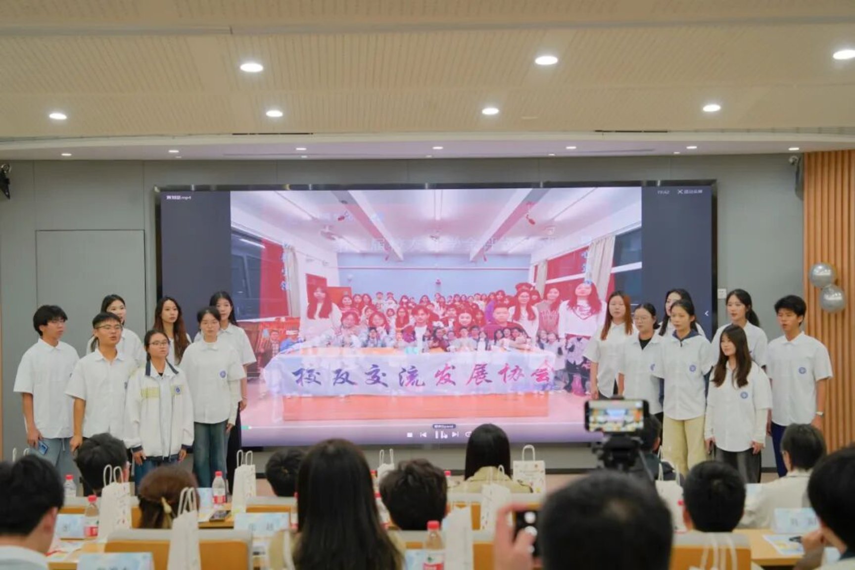 策划部深情献唱《落叶归根》,寓意着“校协永远是校友温暖的港湾”。