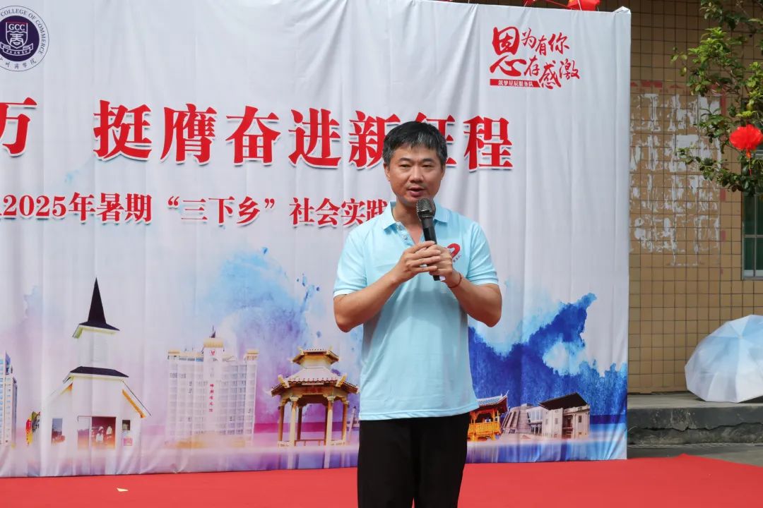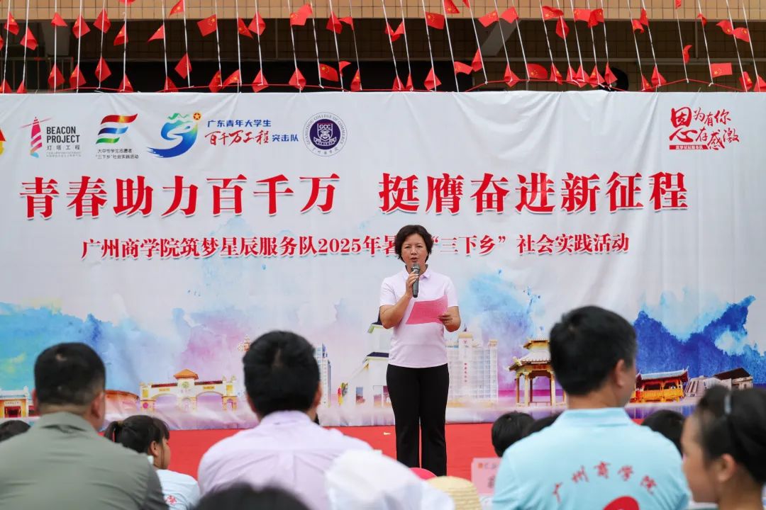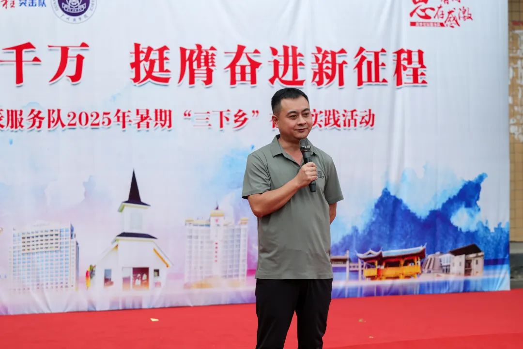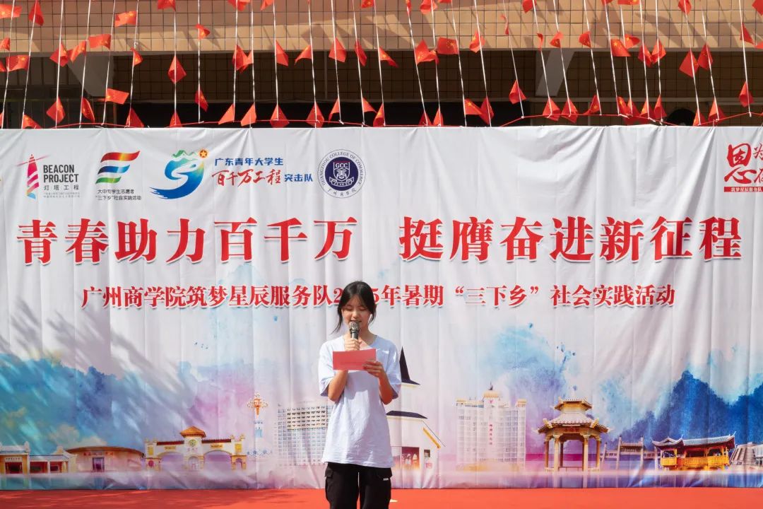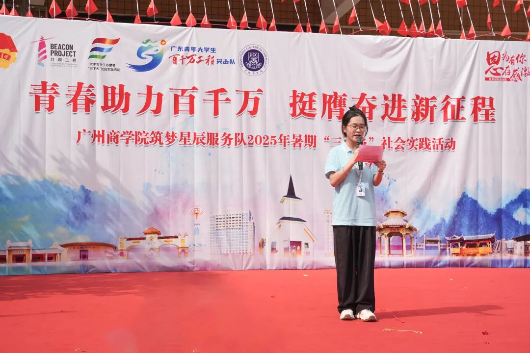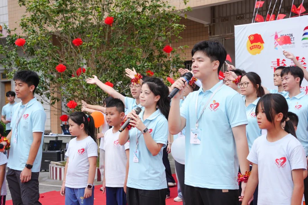 服务队队员代表林俏君代表全体队员感谢各方的支持,以“用爱筑梦,以行践诺”为目标,响应“百千万工程”号召,助力乡村教育振兴。队员们将在14天里用专业与热忱陪伴儿童成长,践行“请党放心,强国有我”的青春誓言,让点点星光汇聚成乡村振兴的璀璨星河。