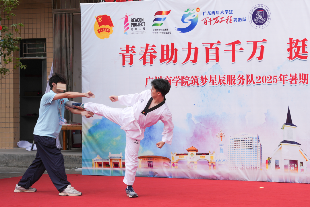 少年起势跆拳破风,展刚毅筋骨,一招一式淬炼坚韧品格。广商以体育人铸就精神脊梁,少年强音响彻双华青山绿水。