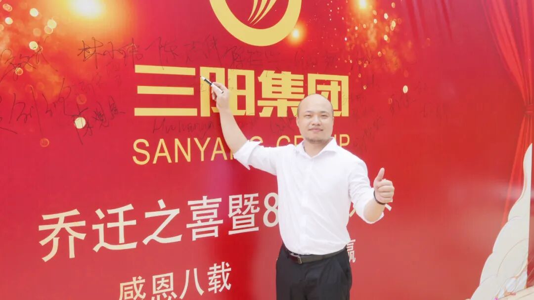 翁楚歆首先对校友企业“双喜临门”表示热烈祝贺,并强调校友企业的蓬勃发展是学校校友工作的生动缩影。他为三阳集团即兴赋藏头诗一首:“三才汇聚启新章,阳煦风和人业昌。乔林凤翥必高翔,迁得琼楼迎瑞祥”,以“三阳乔迁”藏头巧妙寄寓了对企业广纳贤才、和睦兴旺、事业高升、祥瑞相伴的美好祝愿。翁楚歆表示,学校始终高度重视校友工作,目前正广泛开展形式多样的校友活动,期待未来与三阳人力进一步加强沟通,三阳集团持续优化“校友驿站”,共同做好校友联络与服务工作。