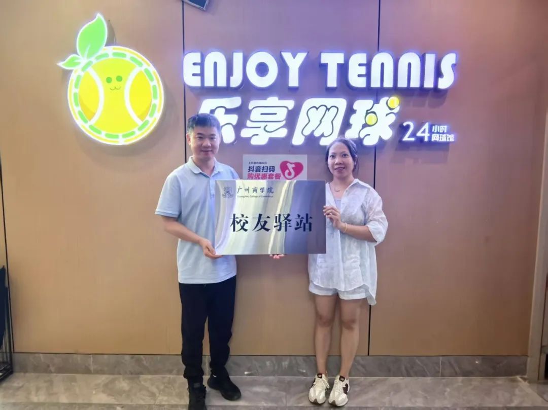 为进一步加强校友间的联系,为校友提供更加便捷的资源共享平台,为在校生创造更多实践锻炼机会,近日,学校校友会执行会长、校友办主任翁楚歆副教授,为2012届周雪莹校友创办的广州享乐网球俱乐部中心(以下简称乐享网球)授予“校友驿站”牌匾。
